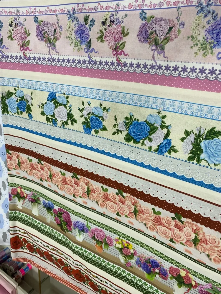 Tricoline Estampa Digital Barrado ROSAS  Imagem