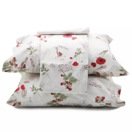 - Jogo com 4 peças sendo um lençol superior, um lençol com elástico e duas fronhas,