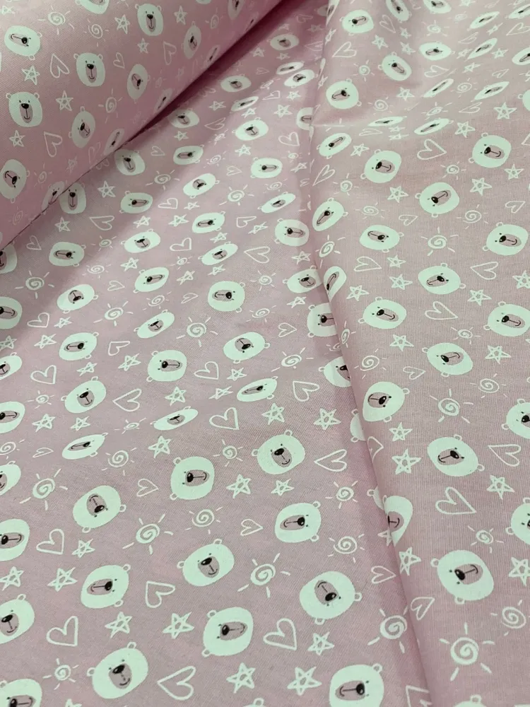 TECIDO TRICOLINE  CARINHA DE URSO  rosa bb -  Imagem